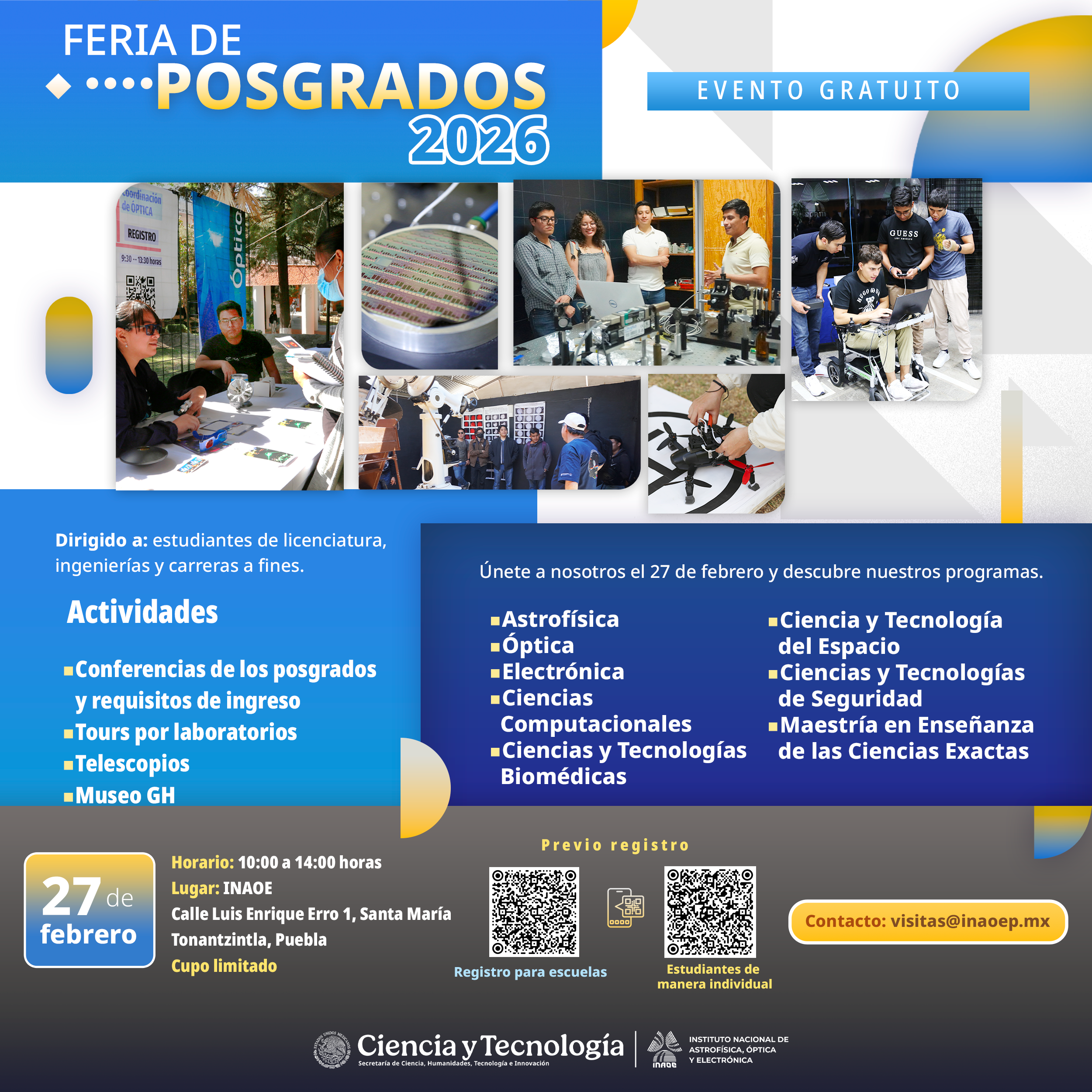 Estas actividades se realizaron gracias al apoyo de directivos, investigadoras, investigadores, estudiantes de posgrado y de servicio social y personal administrativo del INAOE.