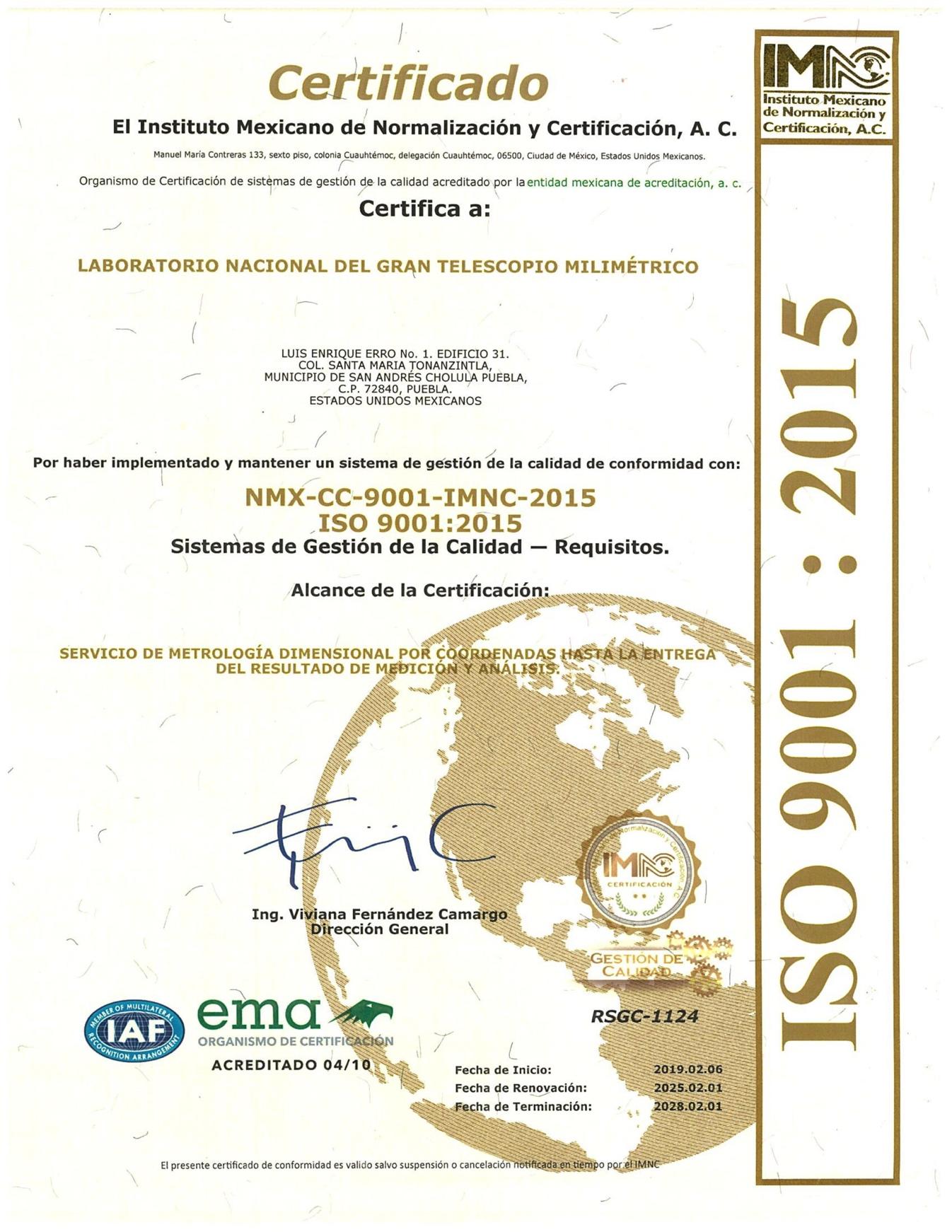 El LSAMD obtuvó la certificación en ISO 9001:2015 en 2019 como instalación del Laboratorio Nacional del Gran Telescopio Milimétrico, reflejando la importancia del LSAMD en el desarrollo de la infraestructura del Gran Telescopio Milimétrico Alfonso Serrano.