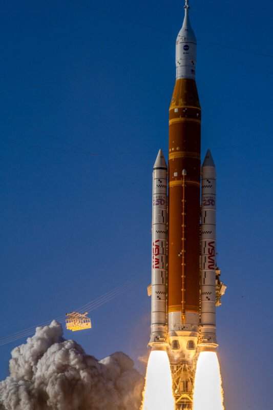 Figura 1. Lanzamiento del cohete de la misión Artemis II, el cual lleva en la parte delantera la nave Orión, dónde viajan cuatro astronautas en un vuelo en torno a nuestro satélite natural, la Luna (Créditos NASA).