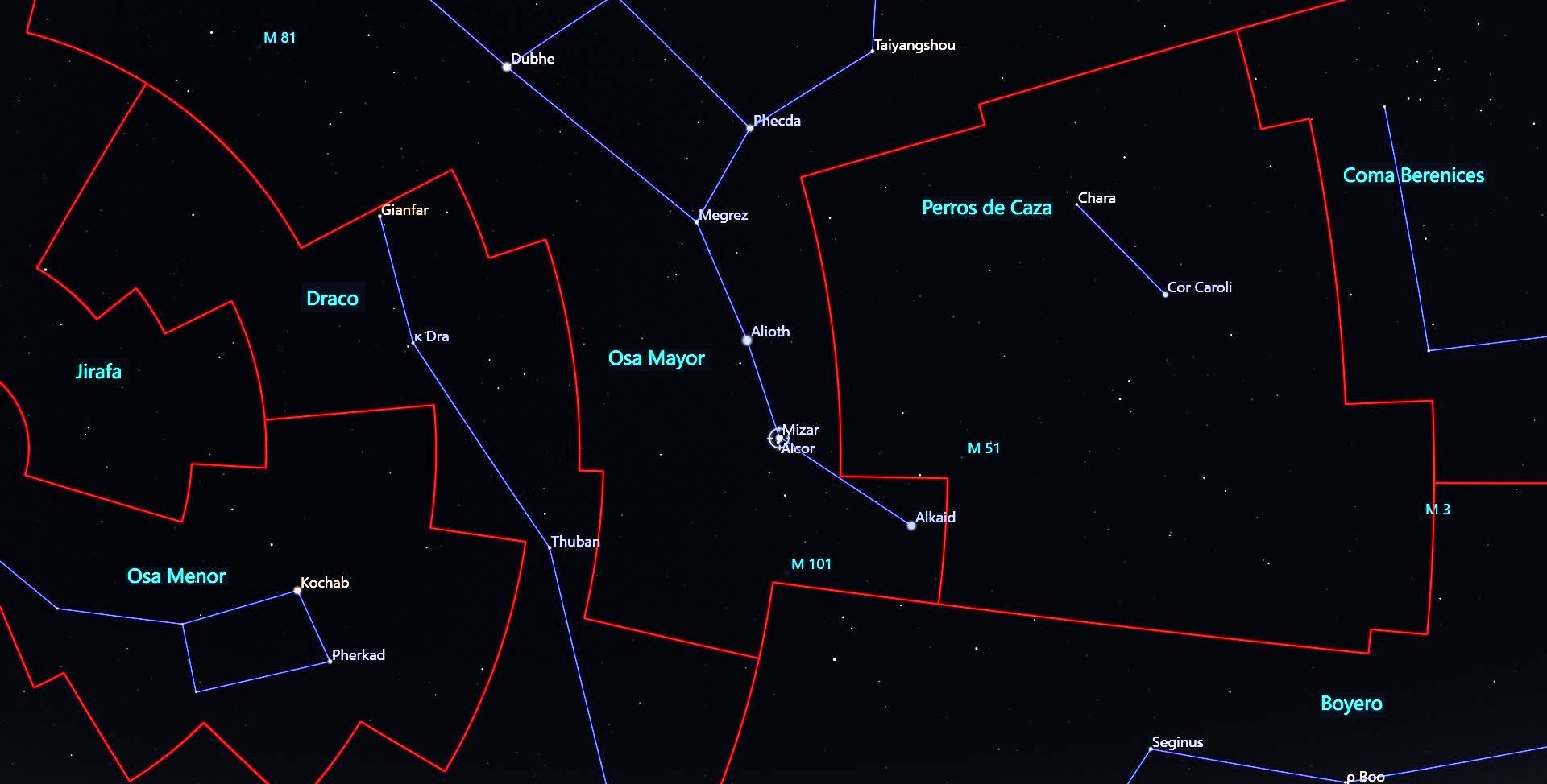 Mizar y Alcor se podrán observar la mayor parte de la noche, en dirección de la constelación de la Osa Mayor, hacia la parte norte de la esfera celeste, pero necesitarás unos binoculares o un pequeño telescopio para ver a Mizar y Alcor de manera separada.