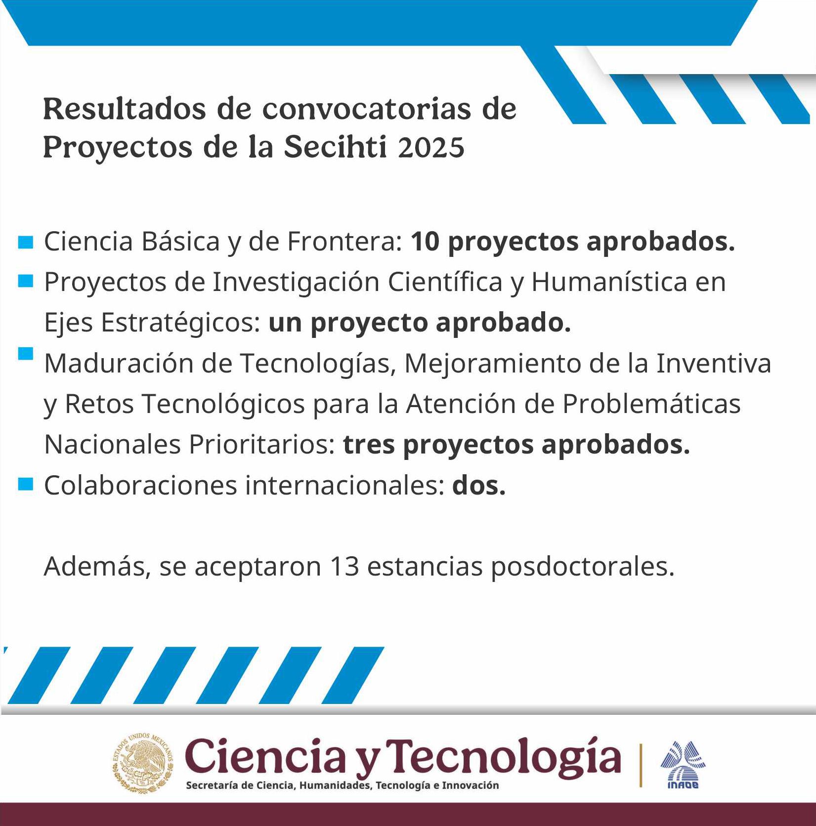 - Ciencia Básica y de Frontera: 10 proyectos aprobados.
